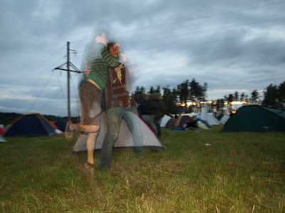 Dar po keliu masinu, be didesniu nuotykiu, atsidureme kazkur 85km uz Rygos, netoli miestelio Cesis – Fonofest festivalio teritorijoje. Teisingiau uz festivalio Fonofest teritorijos ribu. Pati koncertine teritorija buvo apjuosta neiveikiamo juodumo tvora, o palapiniu miestelis buvo neribojamo dydzio iskart salia plento. Tai pasirode nelabai saugu. Kadangi palapine buvo pas p.Simtauta (kuris buvo siek tiek maziau greitas nei mes), o su daiktas i koncertu teritorija negalejome ieiti, isitaiseme kazkur pievoj ir lukuriavom.